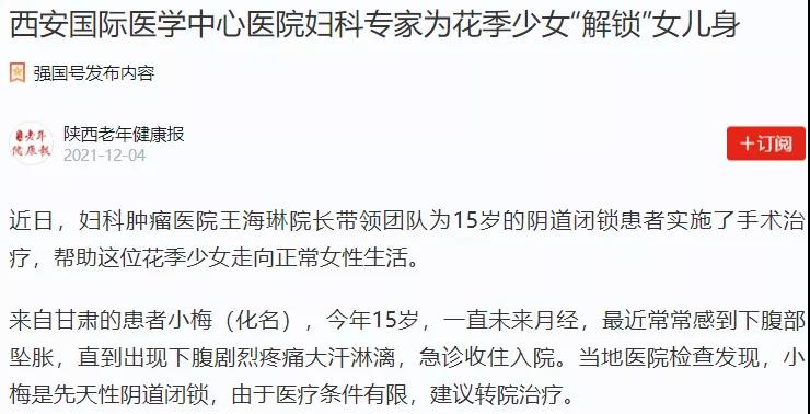 西安國(guó)際醫(yī)學(xué)中心醫(yī)院婦科專(zhuān)家為花季少女“解鎖”女兒身
