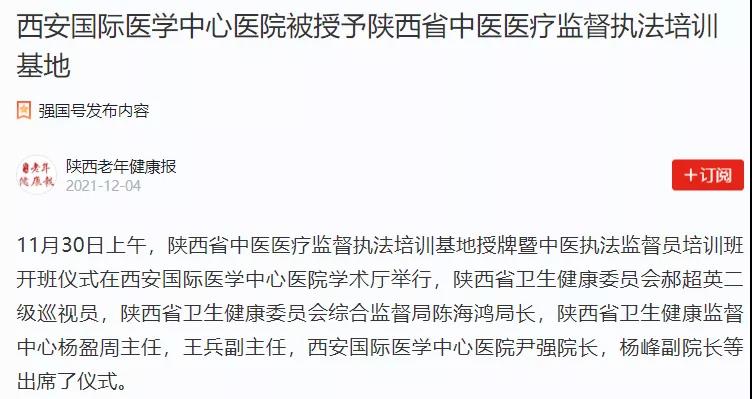 西安國(guó)際醫(yī)學(xué)中心醫(yī)院被授予陜西省中醫(yī)醫(yī)療監(jiān)督執(zhí)法培訓(xùn)基地
