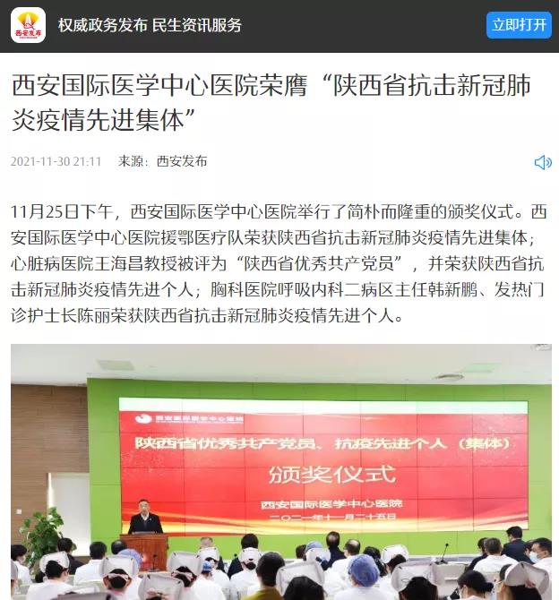 西安國(guó)際醫(yī)學(xué)中心醫(yī)院榮膺“陜西省抗擊新冠肺炎疫情先進(jìn)集體”