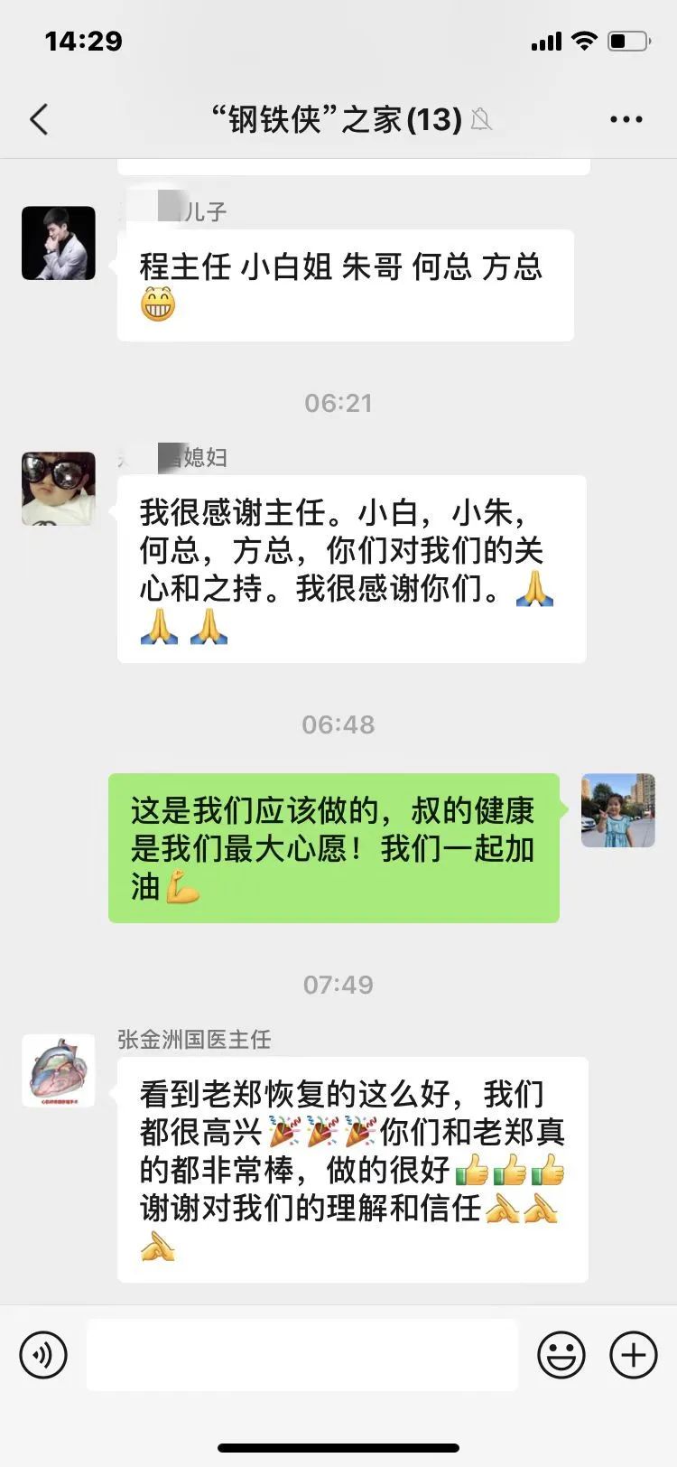 “他們專(zhuān)門(mén)為我建了一個(gè)‘鋼鐵俠之家’的微信群,我和張?jiān)洪L(zhǎng)還有科室的醫(yī)護(hù)人員都像家人一樣,我每天都會(huì)在群里發(fā)我的日常狀態(tài)、吃的藥量”,面色紅潤(rùn)的老鄭步履輕盈地走到駕駛座:“別說(shuō)開(kāi)車(chē)了,在這之前,我連路都走不了,現(xiàn)在我可以去接送孫子上下學(xué)。”