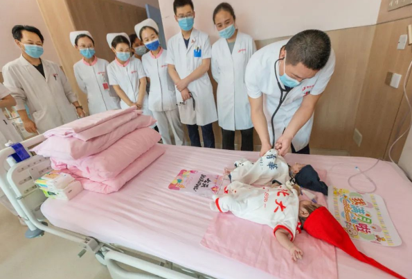 “樂樂、朵朵(均為化名)長大了上清華、北大……”西安國際醫(yī)學(xué)中心醫(yī)院心臟外科病房傳出陣陣歡笑,兩個剛滿月的寶寶分別身著“清華”、“北大”連體衣,并排躺在病床上,接受來自家人和醫(yī)護(hù)人員的祝福。