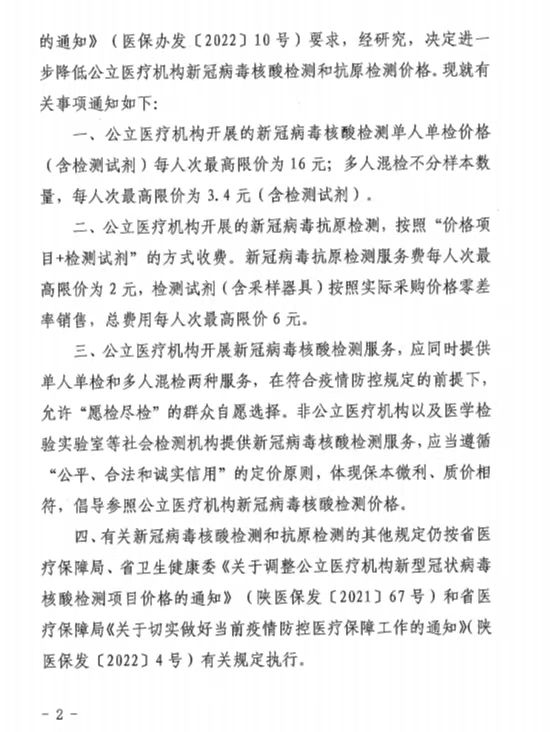 關(guān)于進(jìn)一步降低公立醫(yī)療機(jī)構(gòu)新冠病毒核酸檢測(cè)和抗原檢測(cè)價(jià)格的通知