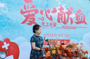 心臟病醫院心臟內科一病區護士長楊蓓蕾作為獻血志愿者代表呼吁大家加入到無償獻血的隊伍中來,點亮生命之燈,讓世界更美好。