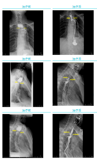 經(jīng)過(guò)一個(gè)周期的放療,李先生明顯感受好多了,可以正常吃飯喝水。食管鋇餐造影顯示,食管吻合口區(qū)腫塊明顯縮小,食管狹窄減輕。
