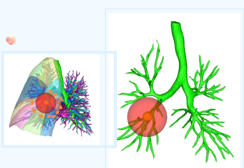 據(jù)王武平主任介紹,胸外科團(tuán)隊目前已常規(guī)開展不同部位肺小結(jié)節(jié)的聯(lián)合肺亞段切除術(shù),為肺小結(jié)節(jié)患者提供個體化的治療。術(shù)前進(jìn)行三維重建,以磨玻璃結(jié)節(jié)為中心,勾勒出病灶周圍2cm切緣球,規(guī)劃切除范圍和路徑,保證足夠切緣,實現(xiàn)肺結(jié)節(jié)的精準(zhǔn)切除和患者快速康復(fù),該技術(shù)既能實現(xiàn)肺結(jié)節(jié)的切除治愈,又能最大程度保留患者的肺功能,是目前針對早期肺磨玻璃結(jié)節(jié)肺癌較先進(jìn)的外科診療技術(shù)。