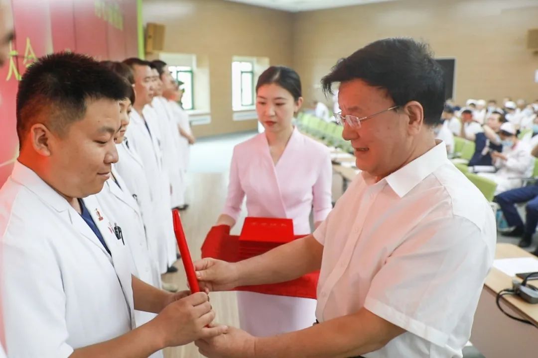 尹強院長、王志峰總經理向受到表彰的人員表示祝賀,并分別為10名最美醫師、10名優秀住院總頒發榮譽證書。