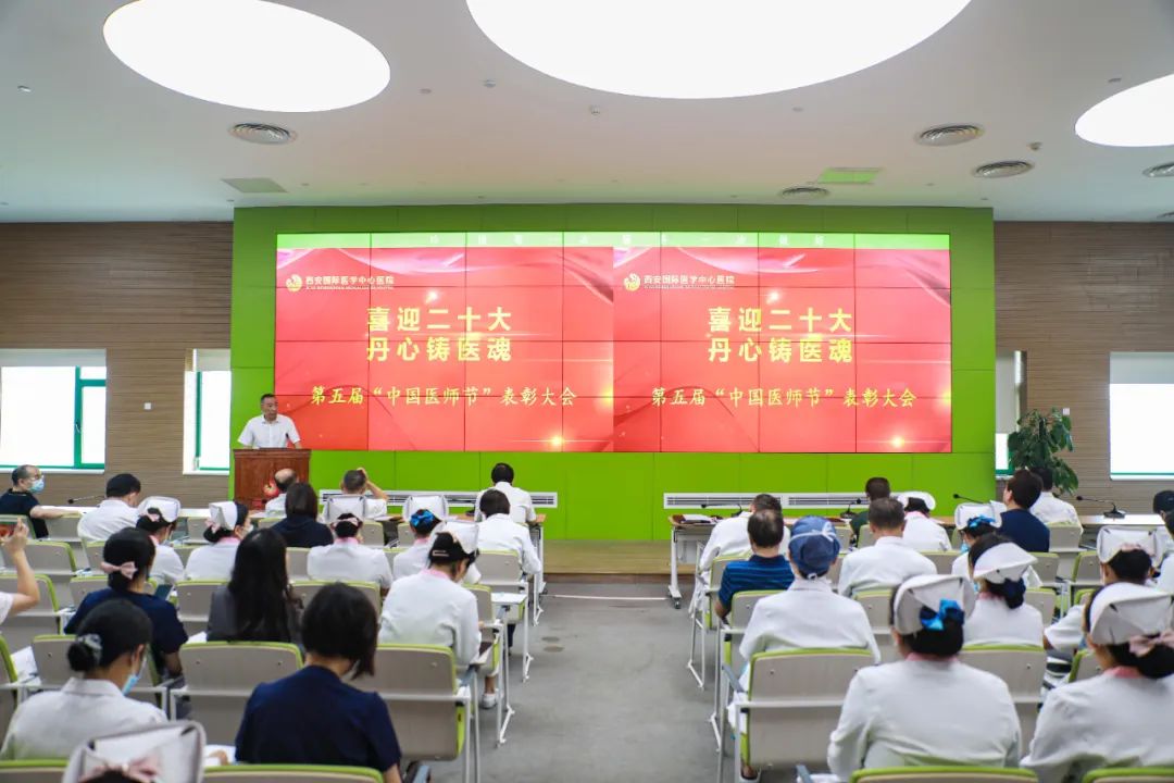 為進一步加強醫師隊伍建設,不斷激發我院醫師職業榮譽感、神圣感、使命感,在中國醫師節到來之際,西安國際醫學中心醫院舉行“喜迎二十大 丹心鑄醫魂”第五屆中國醫師節表彰大會。院長尹強、總經理王志峰、財務總監王亞星、副院長李武平、楊峰、張斌、劉延彤、付強以及醫生代表參加。