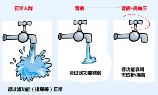 高血壓合并腎病會讓腎臟濾過率減弱,最終導致腎功能衰竭需要透析治療。