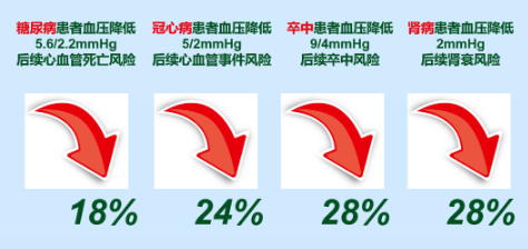 實驗數(shù)據(jù)證實在伴有高血壓合并癥的患者中,血壓輕度降低就能極大地降低相關心血管風險和腎功能衰竭的風險。