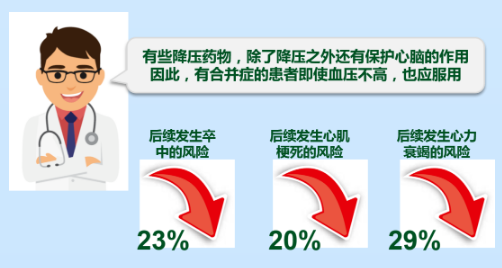 除了降血壓,降壓藥物還有心血管保護作用。有冠心病、腦卒中等合并癥的患者,哪怕血壓不高,也應服用降壓藥物保護心腦血管。