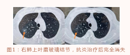 肺內(nèi)的磨玻璃結(jié)節(jié)可以是腫瘤,也有可能是肺部的急、慢性炎癥、肺結(jié)核、肺內(nèi)淋巴結(jié)、慢性肉芽腫性炎,甚至可以是肺內(nèi)的出血灶等。因此,發(fā)現(xiàn)肺部有磨玻璃結(jié)節(jié)不一定都是得了肺癌,炎癥或其它良性病變的可能性也很大。考慮良性病變的結(jié)節(jié)一般只需要定期隨訪和觀察即可;懷疑炎癥時,可以考慮抗炎治療后復查CT(如圖1:男性患者,體檢發(fā)現(xiàn)右肺上葉磨玻璃結(jié)節(jié),我們考慮炎癥可能,經(jīng)積極抗感染治療,3個月后復查CT磨玻璃結(jié)節(jié)完全消失)。對于一些確實懷疑有早期癌變可能的磨玻璃結(jié)節(jié)(包括:純磨玻璃結(jié)節(jié)和有一定實性成分存在的混合磨玻璃結(jié)節(jié)),則需要根據(jù)結(jié)節(jié)大小、其內(nèi)實性成分的多少等綜合判斷,制定隨訪和手術(shù)策略。