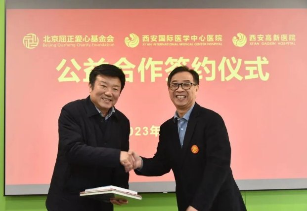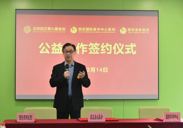 2月14日上午,西安國際醫(yī)學(xué)中心醫(yī)院、西安高新醫(yī)院與北京屈正愛心基金會公益合作簽約儀式在西安國際醫(yī)學(xué)中心醫(yī)院保障樓舉行,北京屈正愛心基金會創(chuàng)始人屈正、理事魏曉輝,國際醫(yī)學(xué)副總裁孫文國,西安國際醫(yī)學(xué)中心醫(yī)院院長尹強,西安高新醫(yī)院總經(jīng)理范郁會、院長宋瑛及醫(yī)院相關(guān)部室、??漆t(yī)院負責(zé)人等出席活動,西安國際醫(yī)學(xué)中心醫(yī)院副院長付強主持儀式。