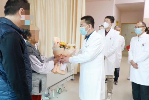 2023年1月31日,西安國(guó)際醫(yī)學(xué)中心醫(yī)院消化外科三病區(qū),劉延彤副院長(zhǎng)、李國(guó)才主任、主管醫(yī)生許澤宇以及科室醫(yī)護(hù)團(tuán)隊(duì),共同為當(dāng)日出院的李虹(化名)送上鮮花,向他們送上最誠(chéng)摯的祝福。