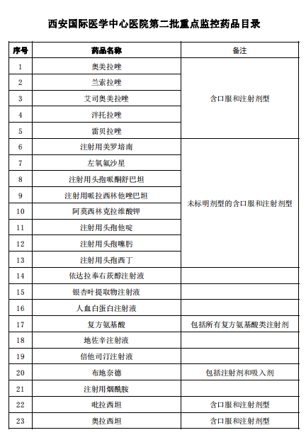 西安國際醫(yī)學(xué)中心醫(yī)院第二批重點(diǎn)監(jiān)控藥品目錄