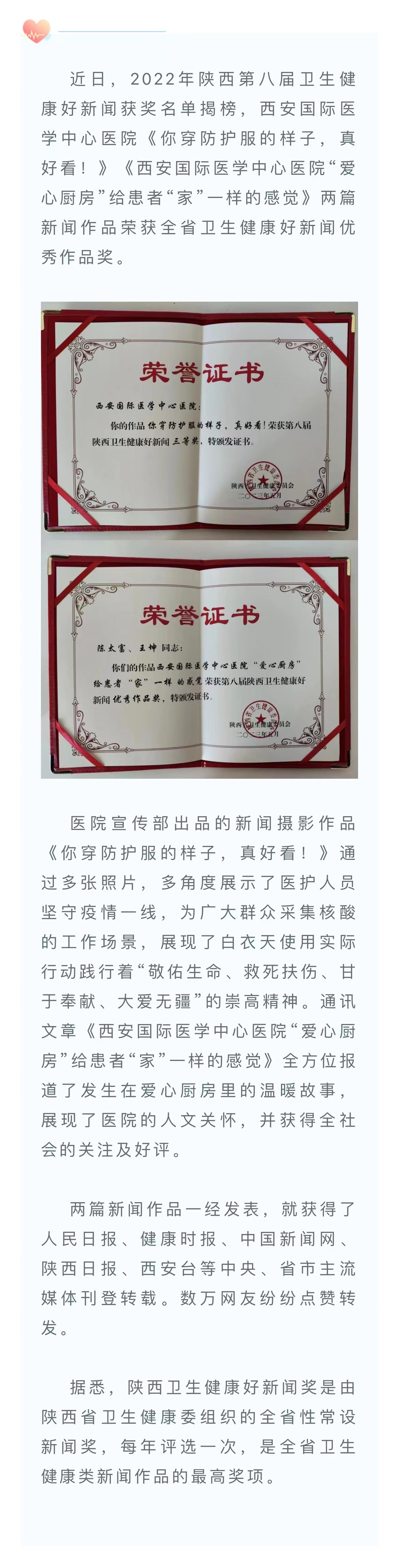 我院兩篇新聞作品榮獲陜西省衛生健康好新聞優秀作品獎