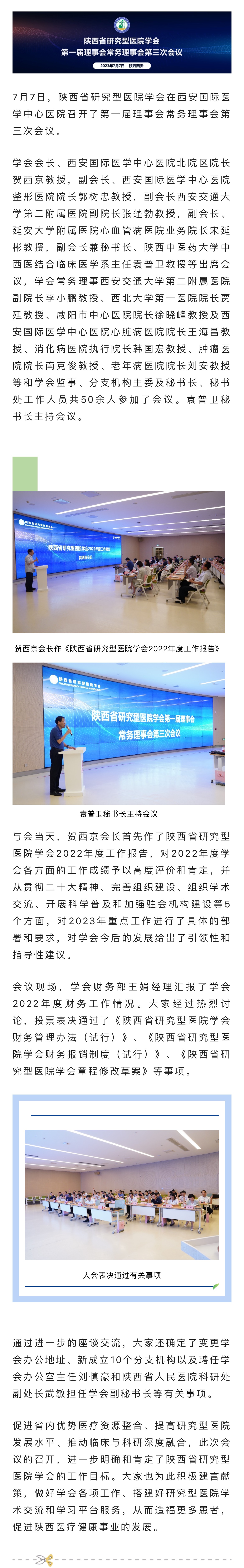 陜西省研究型醫院學會第一屆理事會第三次會議在我院召開