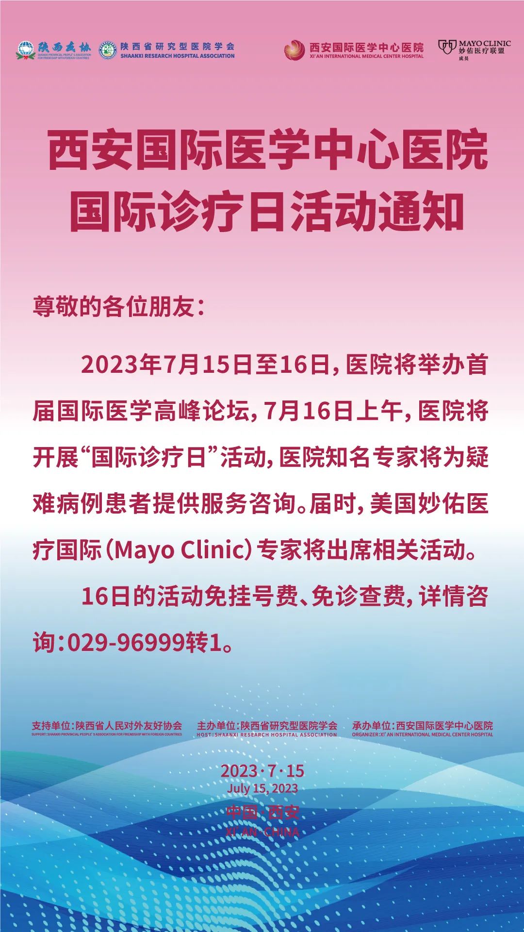 西安國際醫學中心醫院國際診療日活動通知