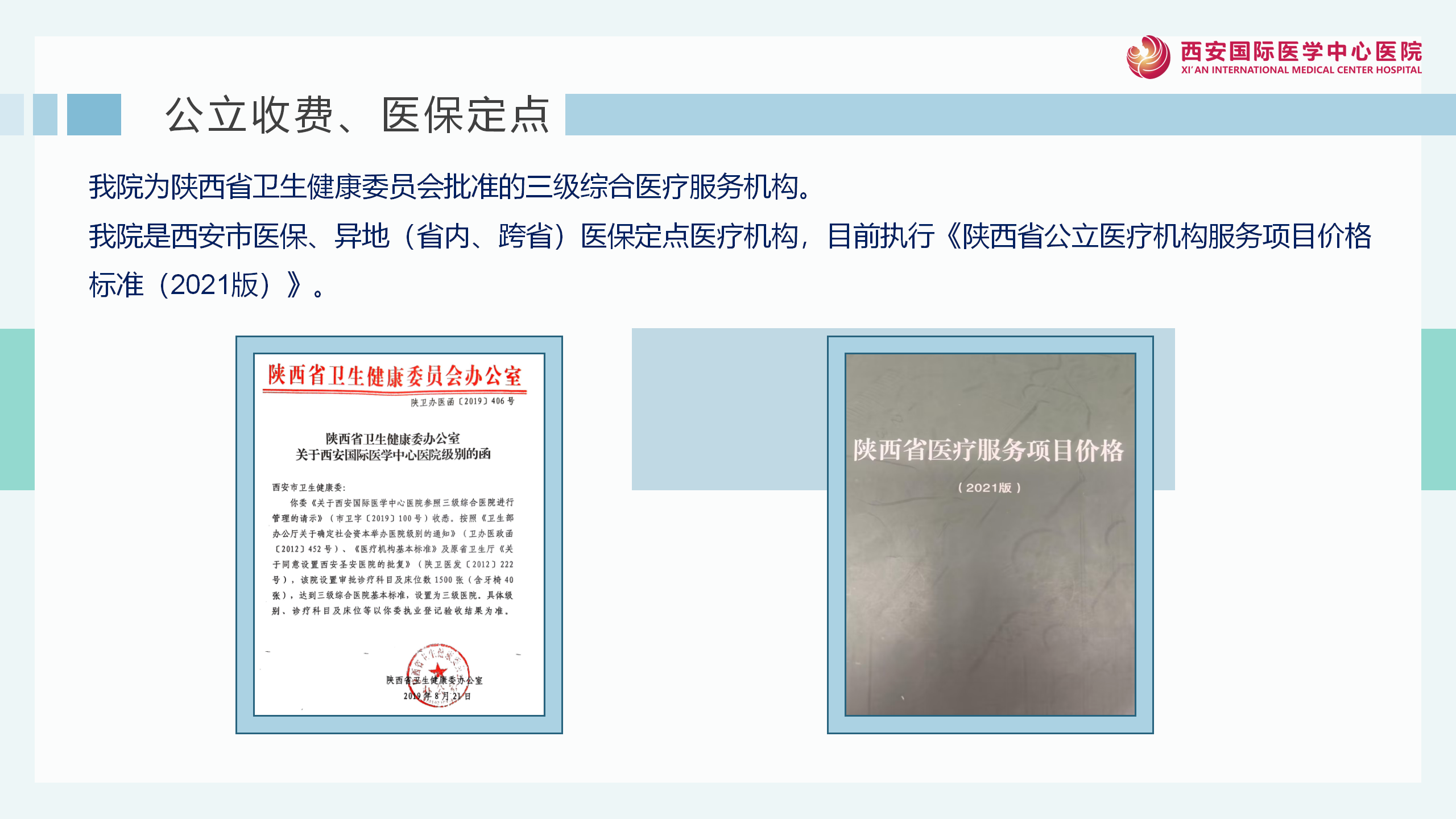 • 國內(nèi)首家高分通過JCI認(rèn)證的醫(yī)院 西安國際醫(yī)學(xué)中心醫(yī)院為國內(nèi)首家高分通過JCI認(rèn)證的醫(yī)院,該稱號由國際醫(yī)療機(jī)構(gòu)認(rèn)證聯(lián)合委員會頒布。