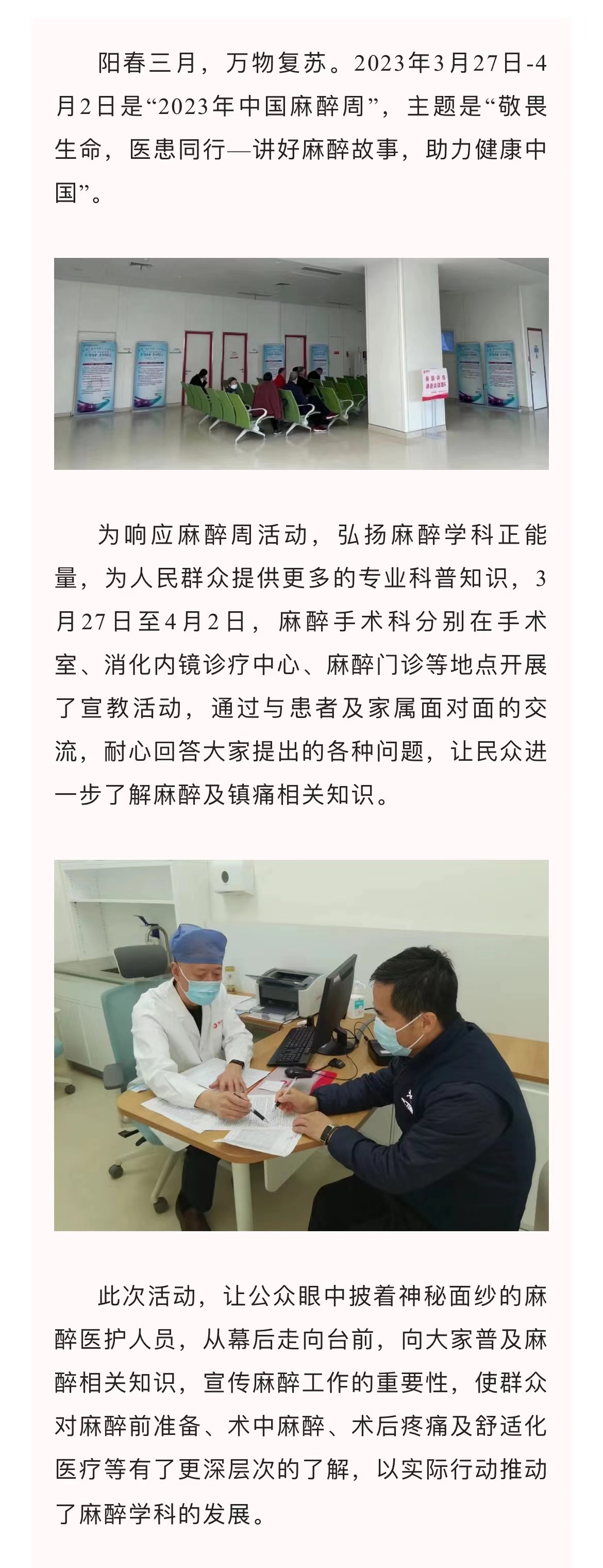 敬畏生命,醫(yī)患同行——我院開展“中國麻醉周”宣教活動(dòng)
