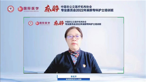 全國(guó)非公立醫(yī)療機(jī)構(gòu)協(xié)會(huì)護(hù)理分會(huì)副會(huì)長(zhǎng)、西安國(guó)際醫(yī)學(xué)中心醫(yī)院副院長(zhǎng)李武平主持麻醉專科護(hù)士線上培訓(xùn)。清華大學(xué)長(zhǎng)庚醫(yī)院涂淑敏、北京大學(xué)國(guó)際醫(yī)院趙欣、北京大學(xué)人民醫(yī)院何苗、徐州醫(yī)科大學(xué)護(hù)理學(xué)院周芳教授、西京醫(yī)院麻醉科黃朝旭護(hù)士長(zhǎng)分別授課,解析麻醉護(hù)理工作重點(diǎn)、為麻醉護(hù)理人才建設(shè)提供建議。