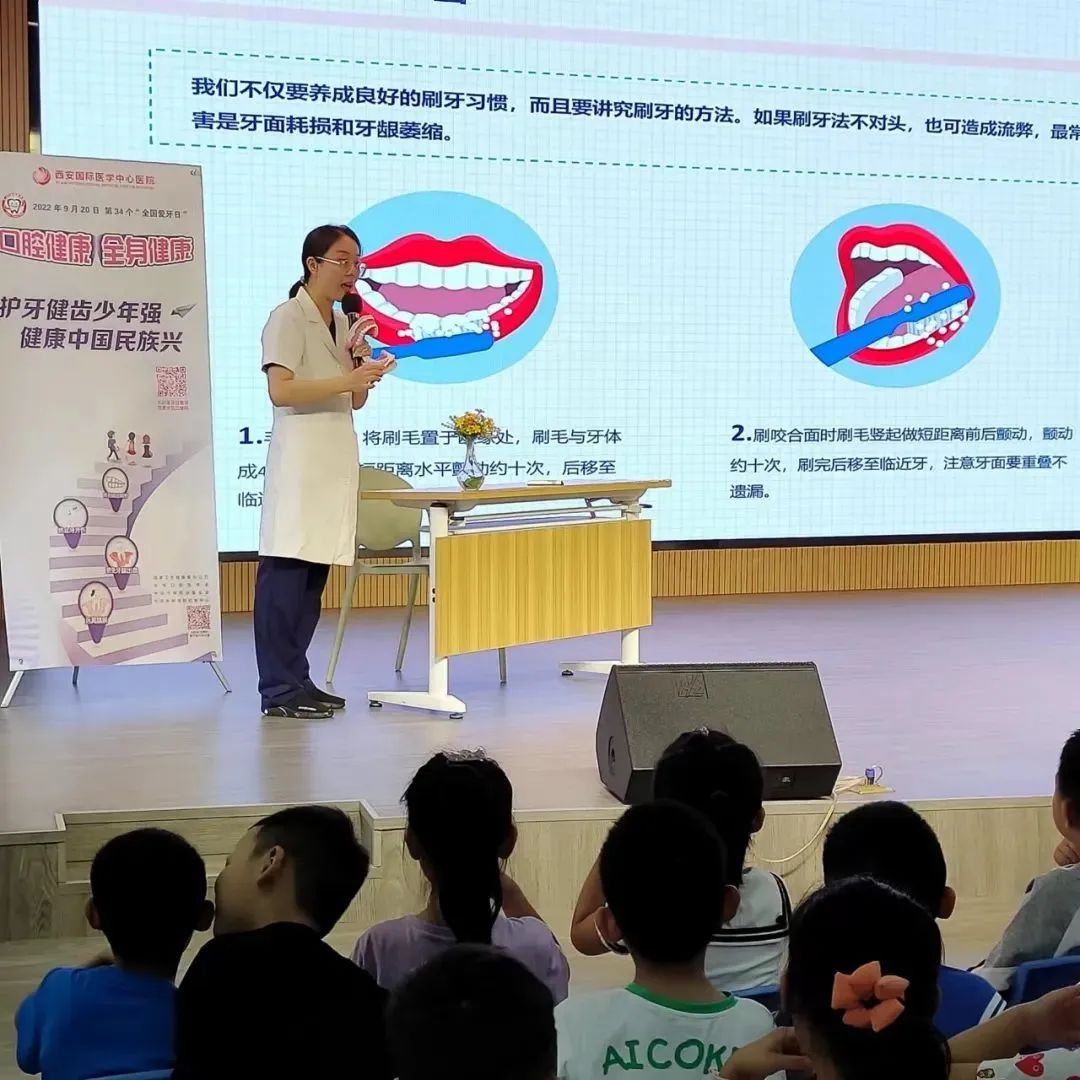 9月20日第34個(gè)“全國(guó)愛(ài)牙日”,為進(jìn)一步提高兒童的口腔健康意識(shí),養(yǎng)成從小保護(hù)牙齒、清潔口腔的良好生活習(xí)慣,9月15日、17日,西安國(guó)際醫(yī)學(xué)中心醫(yī)院口腔科舉行愛(ài)牙日系列公益宣教活動(dòng),讓孩子們深切意識(shí)到愛(ài)牙護(hù)齒的重要性,為預(yù)防和減少兒童口腔疾病的發(fā)生打下堅(jiān)實(shí)基礎(chǔ)。