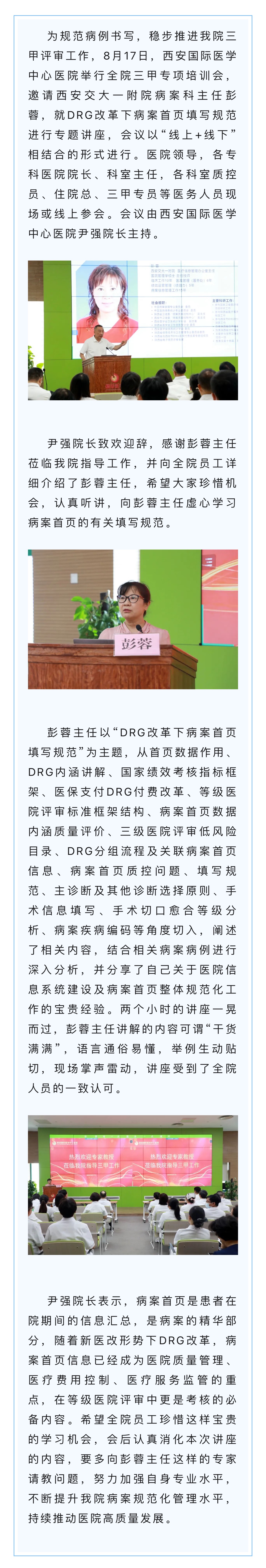 DRG改革下病案首頁填寫規(guī)范——西安國際醫(yī)學中心醫(yī)院舉行三甲專項培訓會