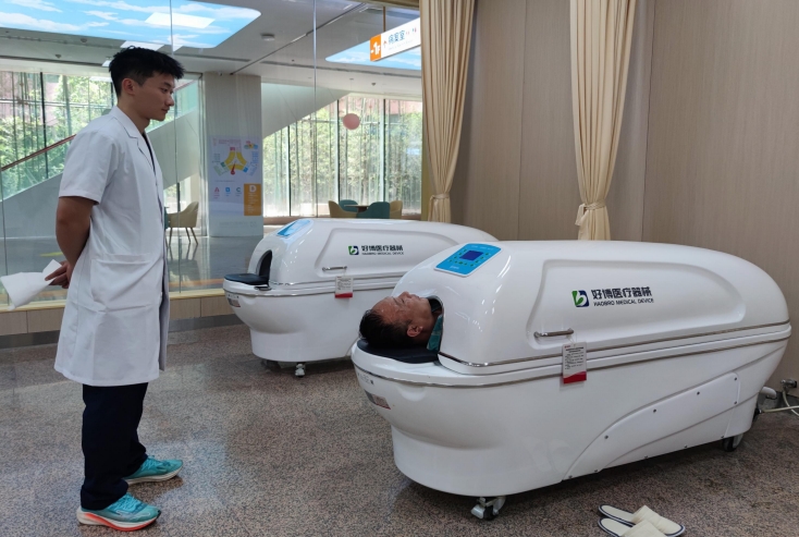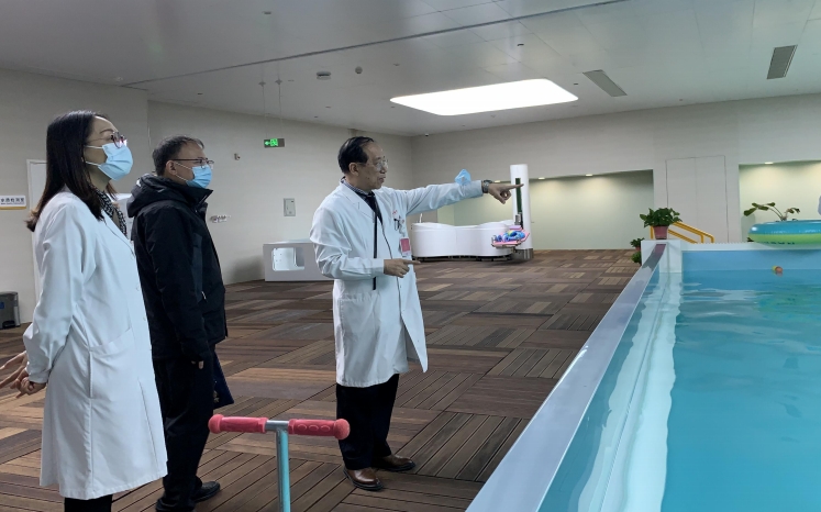 會后,牛部長一行參觀了醫院成人康復部的肌骨與臟器康復治療區、水療康復區、中藥熏蒸室。期間張正湘院長詳細介紹了我院康復部的優勢科室、先進儀器、構思設計及特色醫療服務。牛部長一行對我院工傷保險工作所做出的努力和取得的成績給予了高度評價,并對醫院先進的醫療設備、溫馨的就醫環境、人性化的醫療服務贊不絕口。并希望與醫院加強工傷醫療康復的合作意愿,為廣大工傷患者提供更優質的服務。