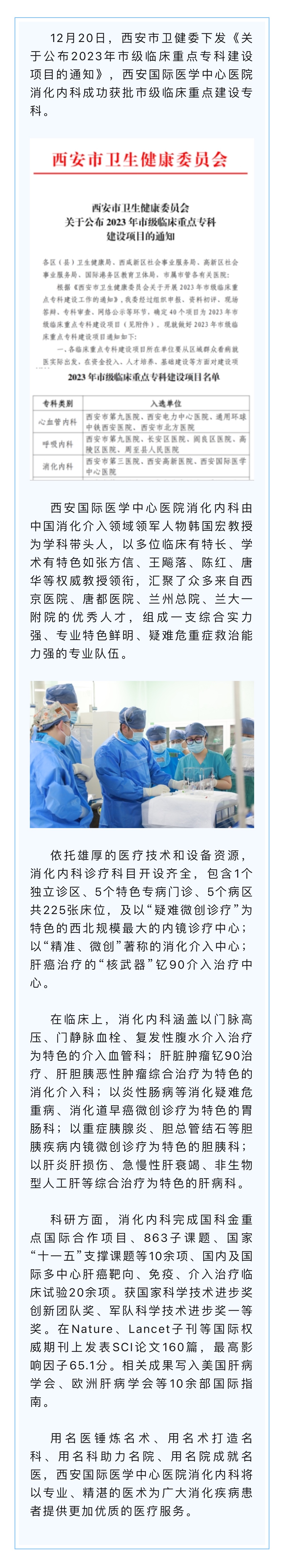 我院消化內科成功獲批市級臨床重點建設專科