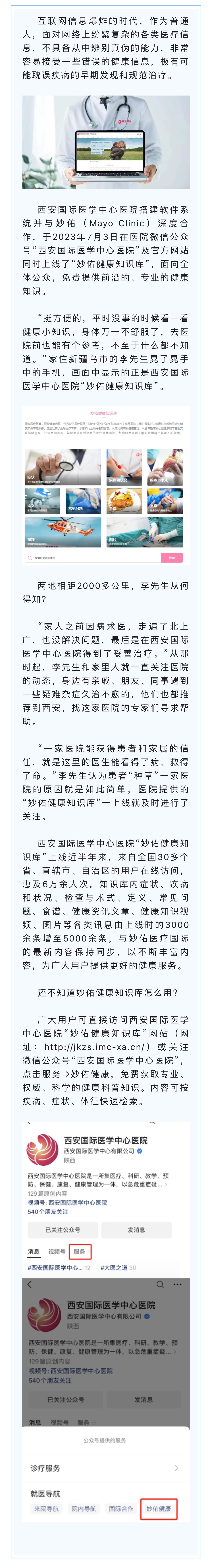 24小時掌中健康管家——西安國際醫學中心醫院“妙佑健康知識庫”
