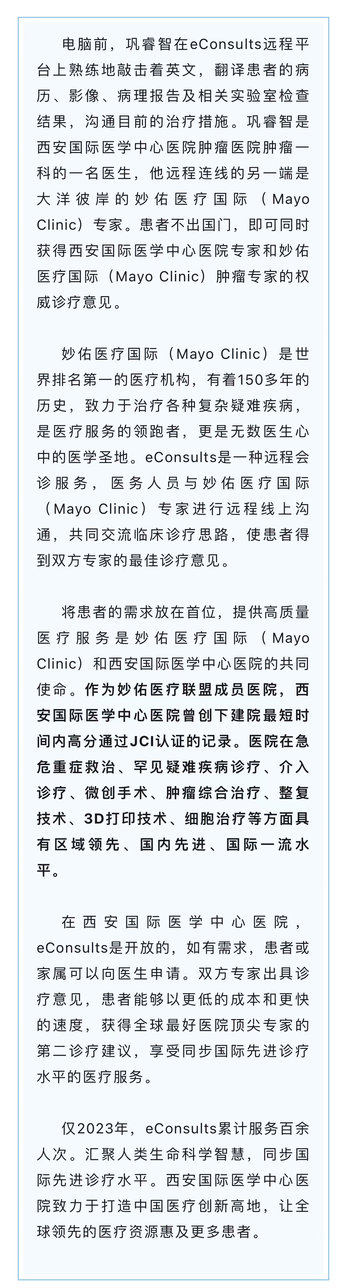 觸手可及!在西安國際醫學中心醫院,eConsults讓你不出國門,同步國際先進診療服務