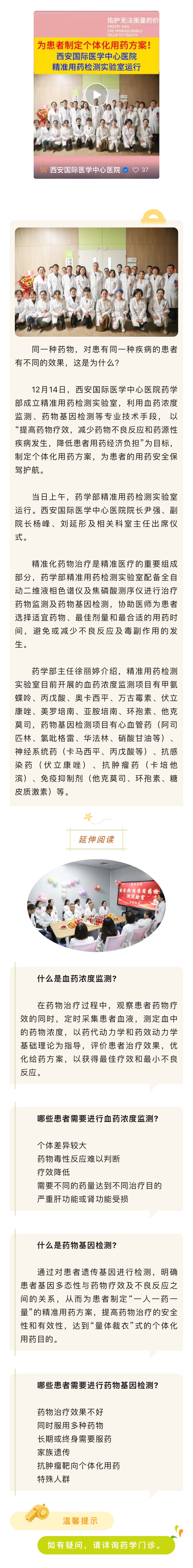 為患者制定個體化用藥方案!西安國際醫(yī)學(xué)中心醫(yī)院精準用藥檢測實驗室運行