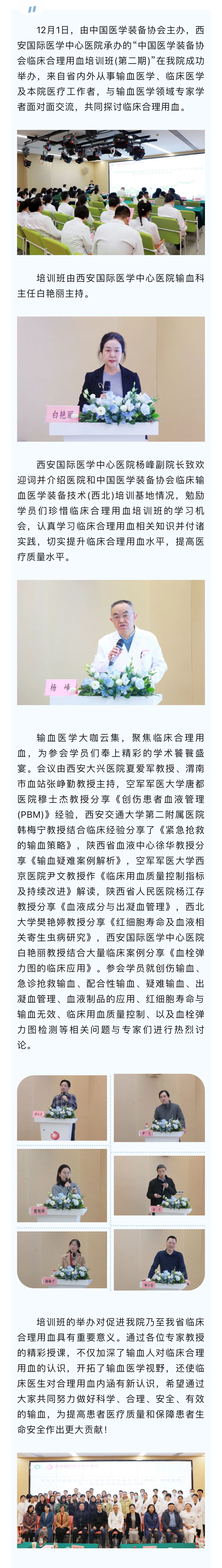 我院舉辦中國醫(yī)學(xué)裝備協(xié)會(huì)臨床合理用血培訓(xùn)班