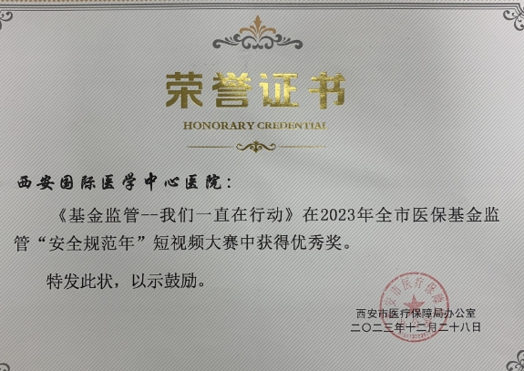 近日,西安市醫療保障局公布2023年全市醫保基金監管“安全規范年”短視頻大賽評選結果,我院宣傳短視頻《基金監管——我們一直在行動》榮獲優秀獎。