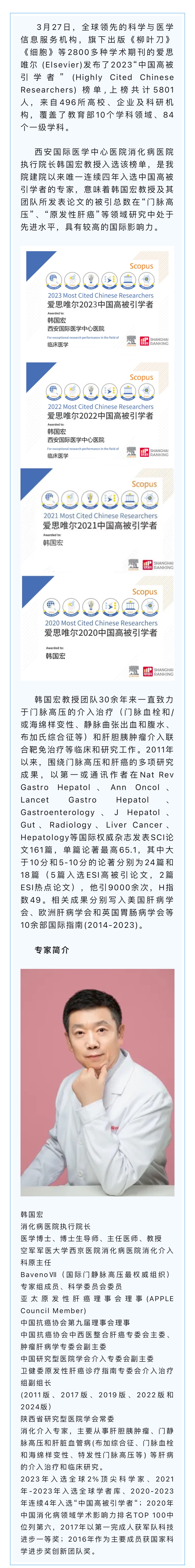 韓國宏教授連續4年入選“中國高被引學者”榜單!