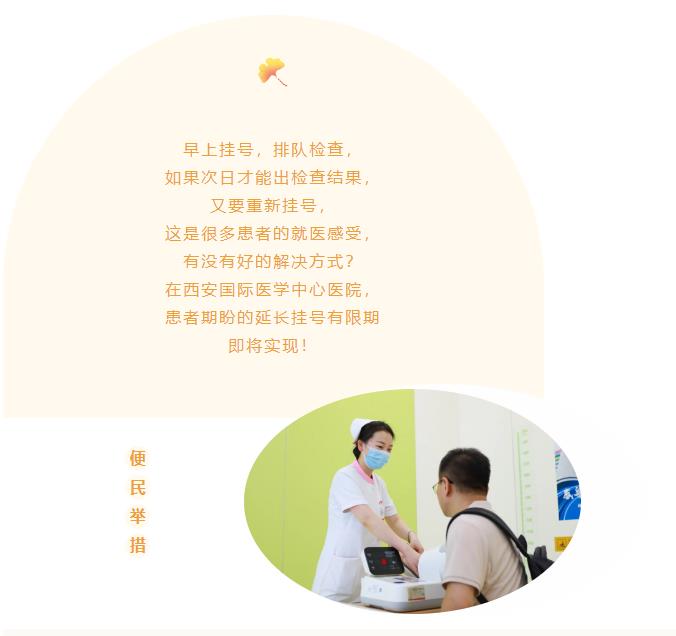 西安國際醫學中心醫院打破掛號診療當日有效的慣例,創新推出“一次掛號三天有效”的舉措,進一步優化門診服務流程,降低患者就醫成本,改善患者就醫感受。自2023年8月7日起,患者掛號就診后,如果檢驗、CT等輔助檢查結果當天未出,三日內再次在同院區、同專業就診免收掛號費,醫生免費為患者解讀報告,提供治療建議。