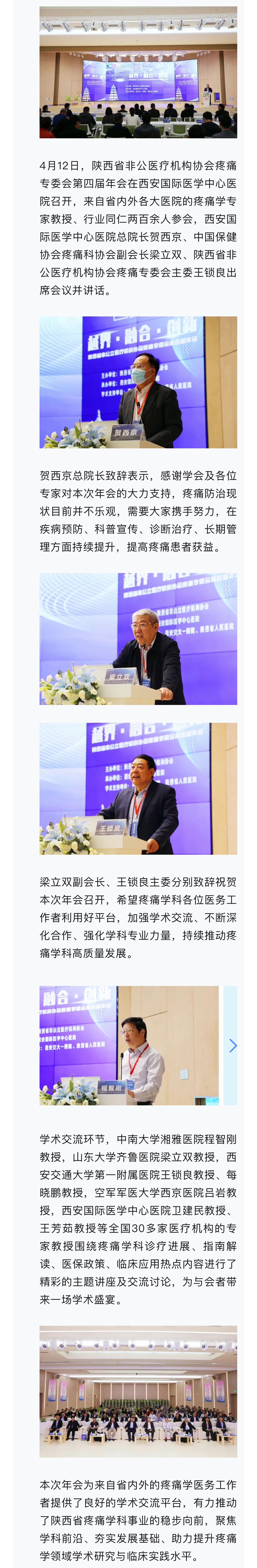 陜西省非公醫(yī)療機構(gòu)協(xié)會疼痛專委會第四屆年會在我院召開