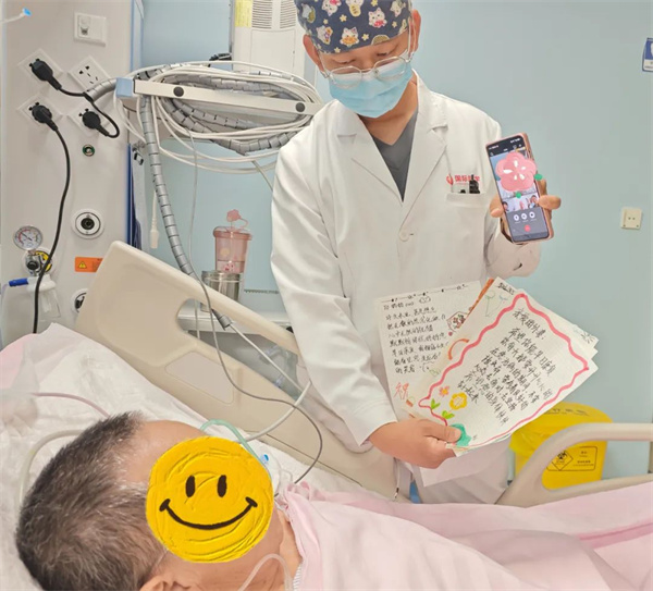深知家屬的牽掛,護士們會細(xì)心記錄患者的狀態(tài),向家屬詳細(xì)轉(zhuǎn)達。她們鼓勵家屬錄制語音或視頻,將家人的聲音和面容帶到床邊。有時,一句來自孫輩的“爺爺加油”,一段愛人熟悉的叮嚀,就能讓患者樹立起戰(zhàn)勝病魔的信心。