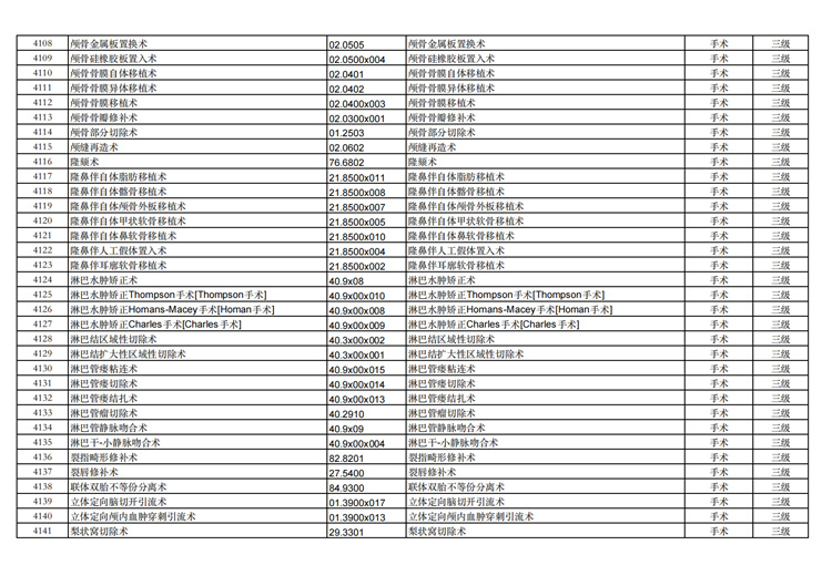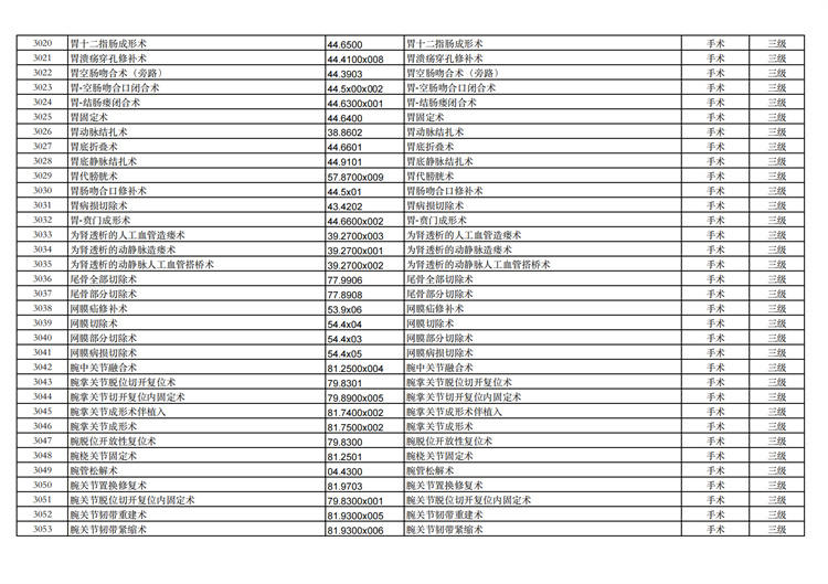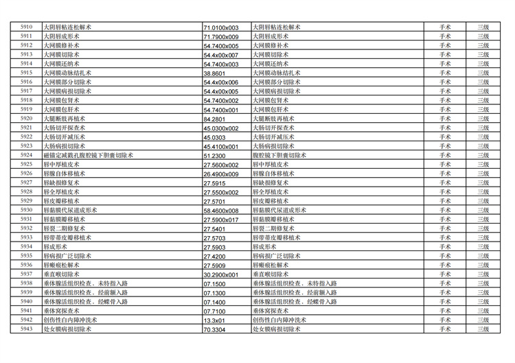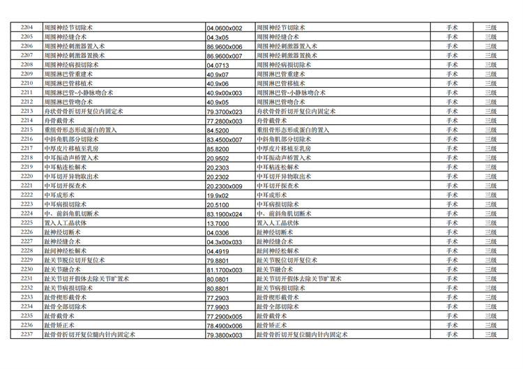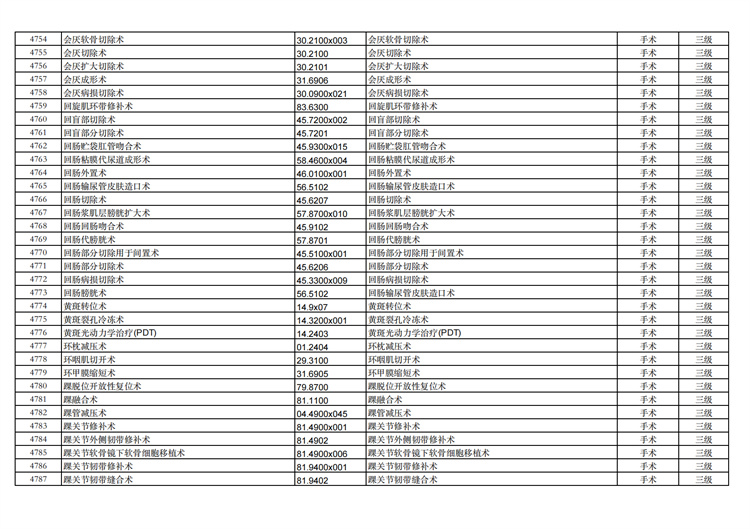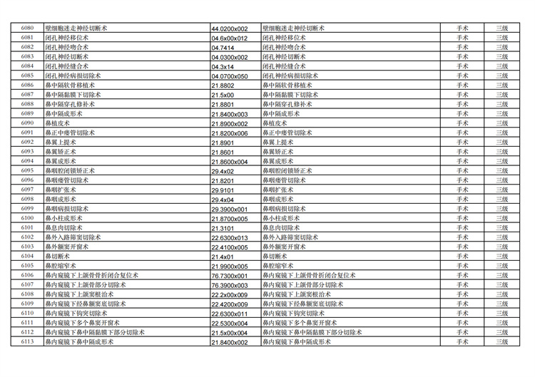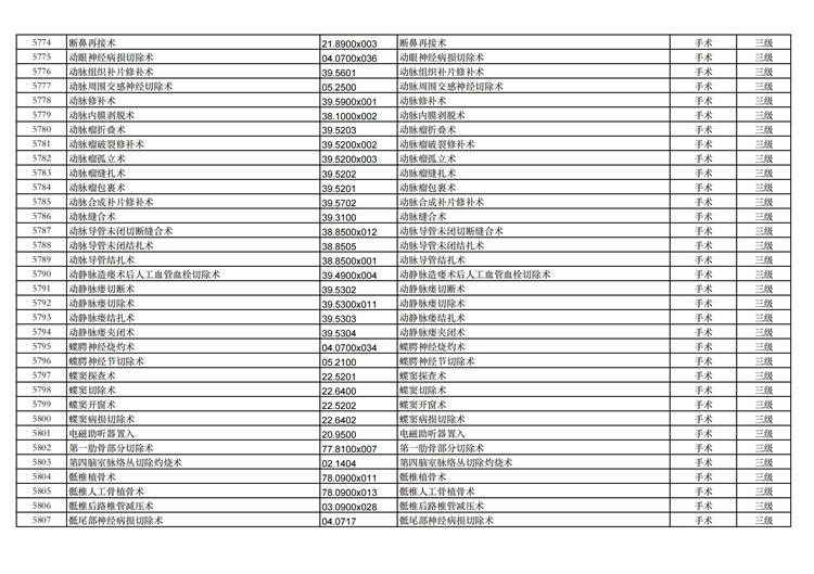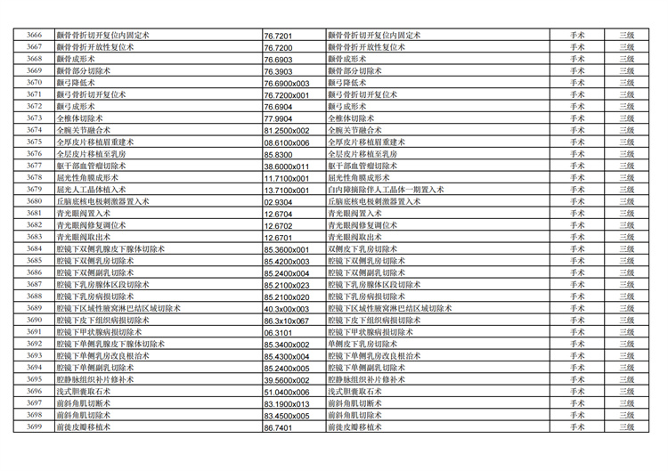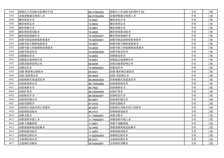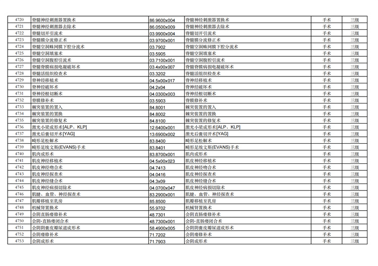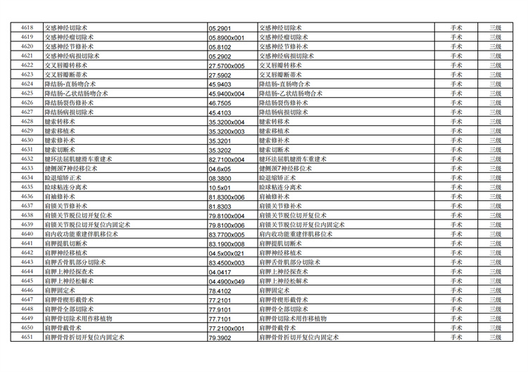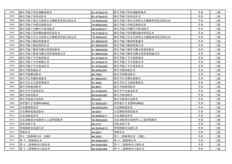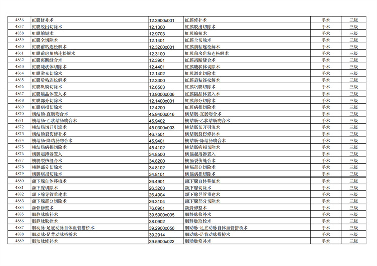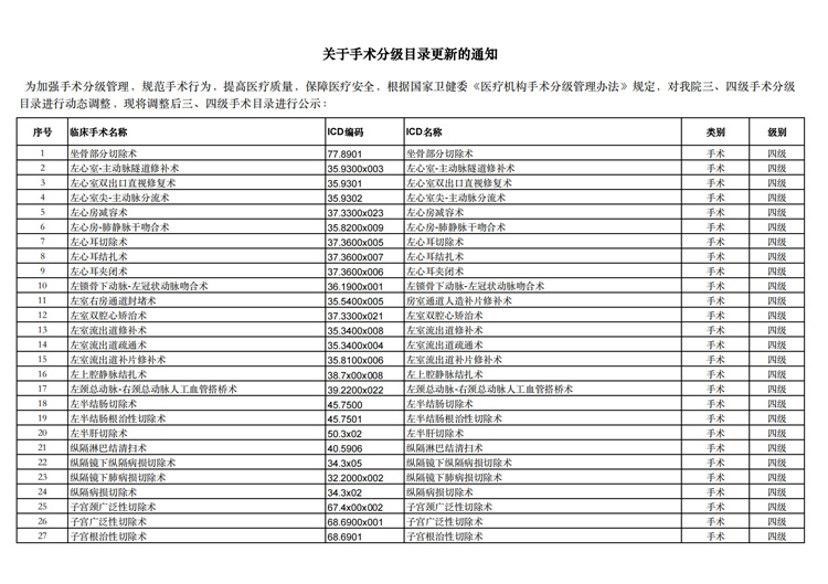 關(guān)于手術(shù)分級目錄更新的通知