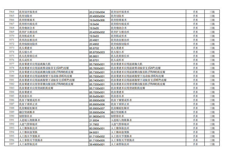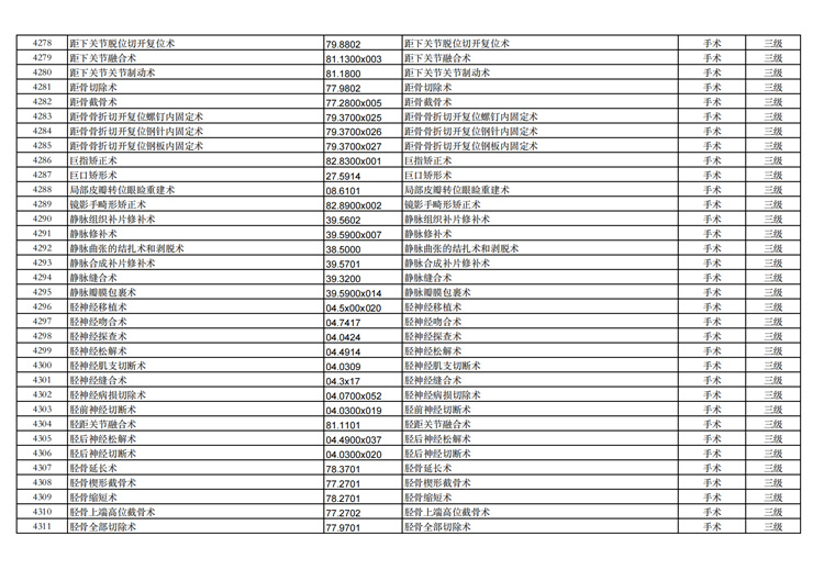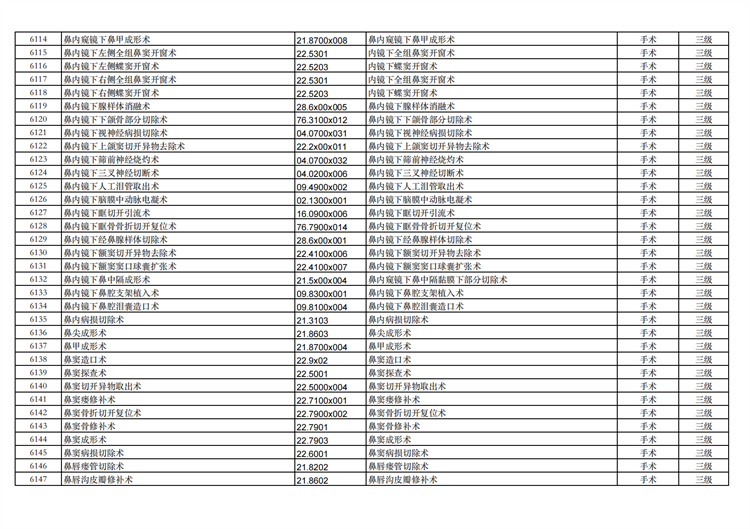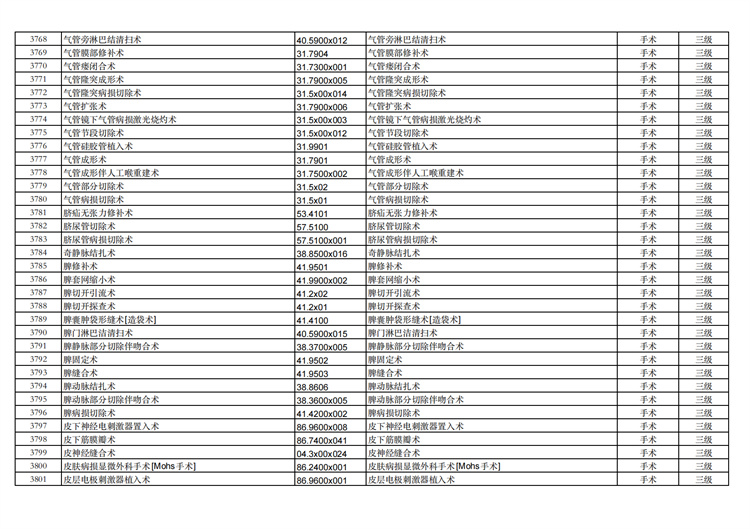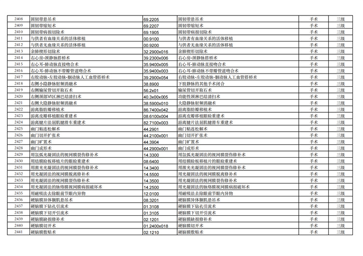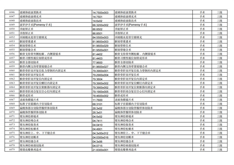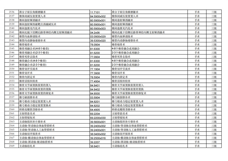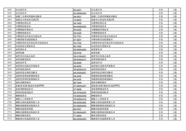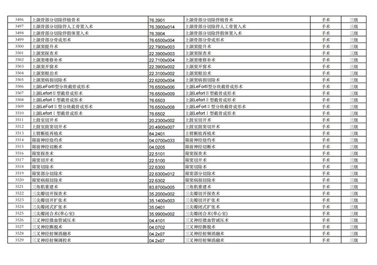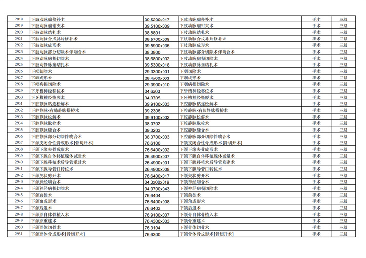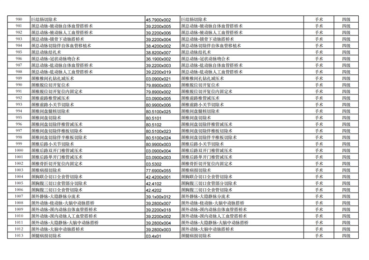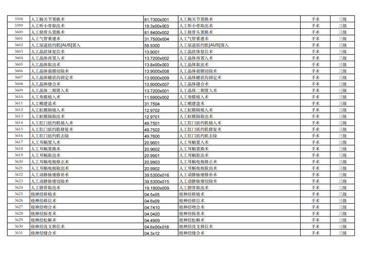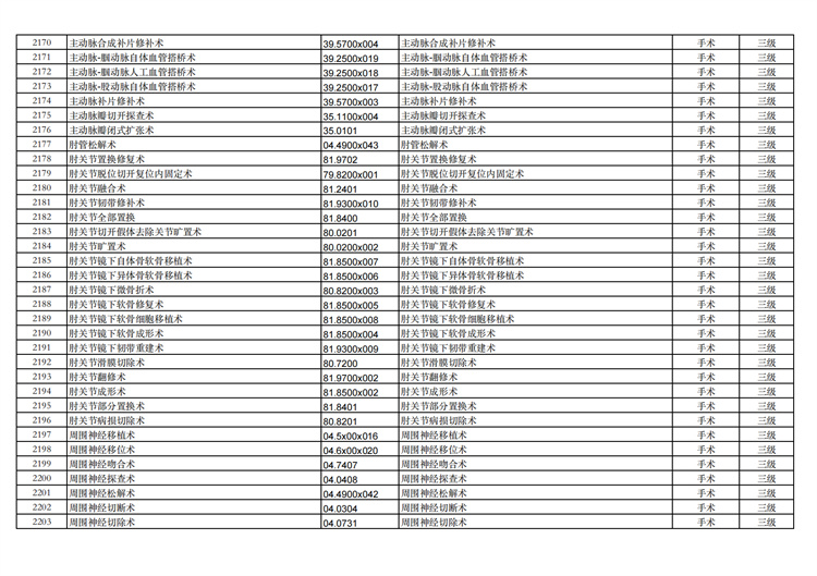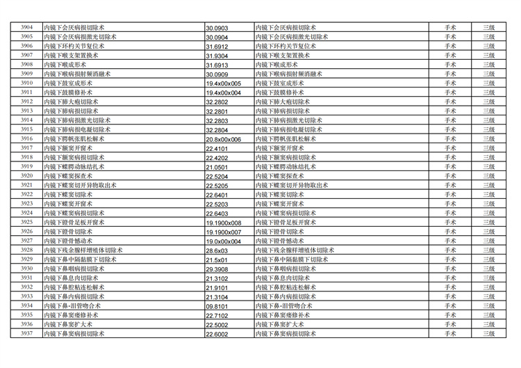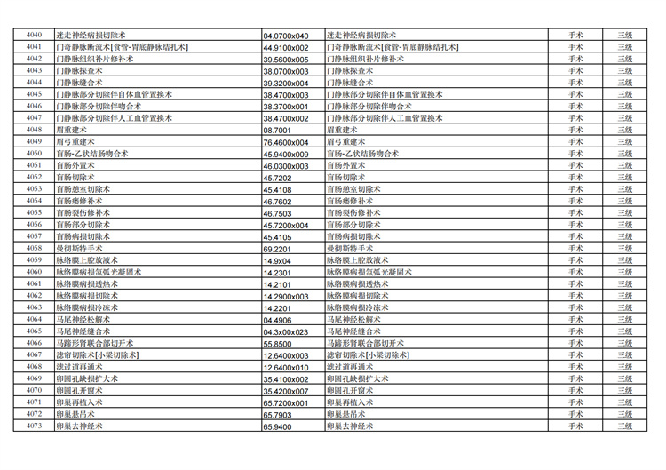 關(guān)于手術(shù)分級目錄更新的通知