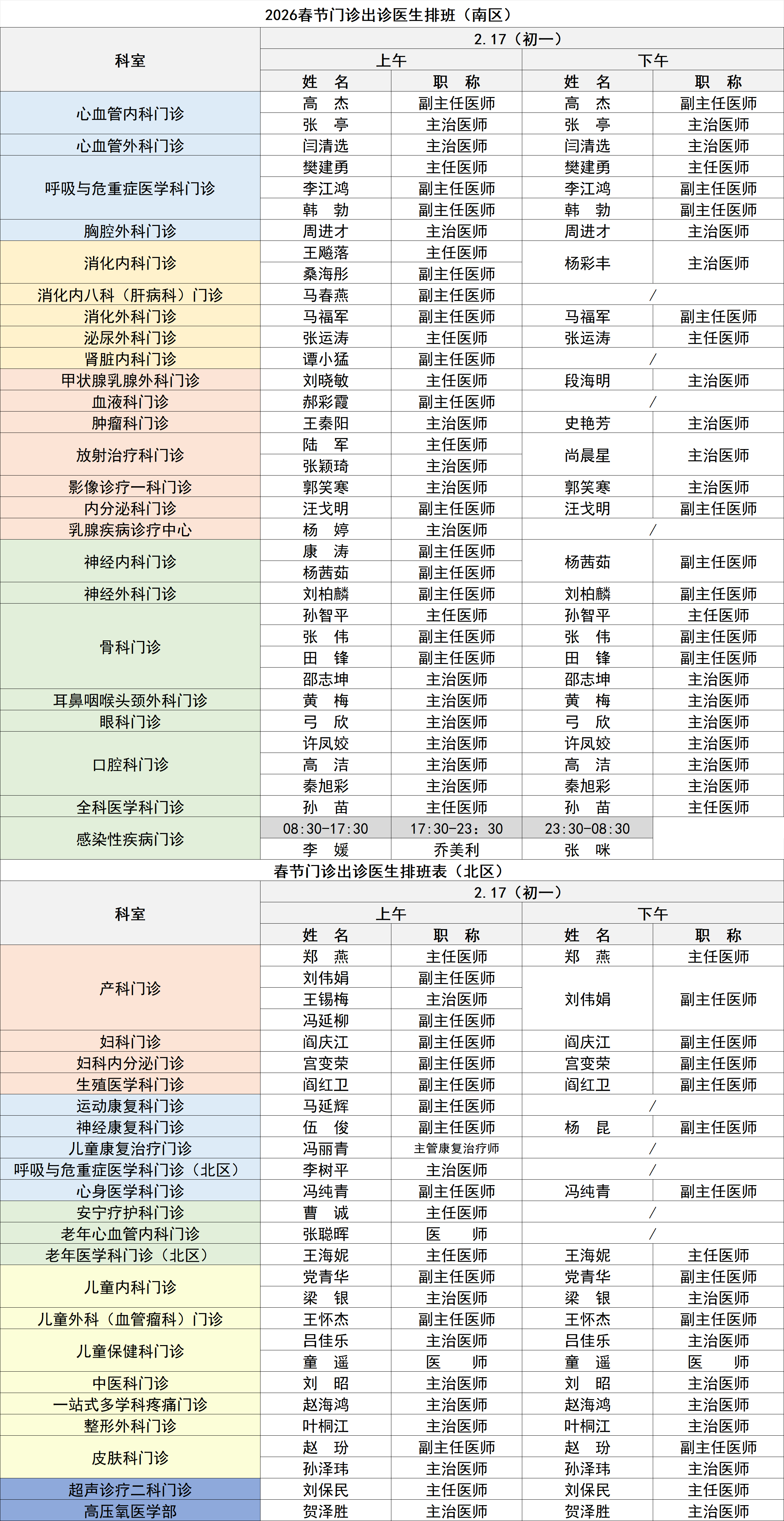 西安國際醫(yī)學(xué)中心醫(yī)院春節(jié)門診排班