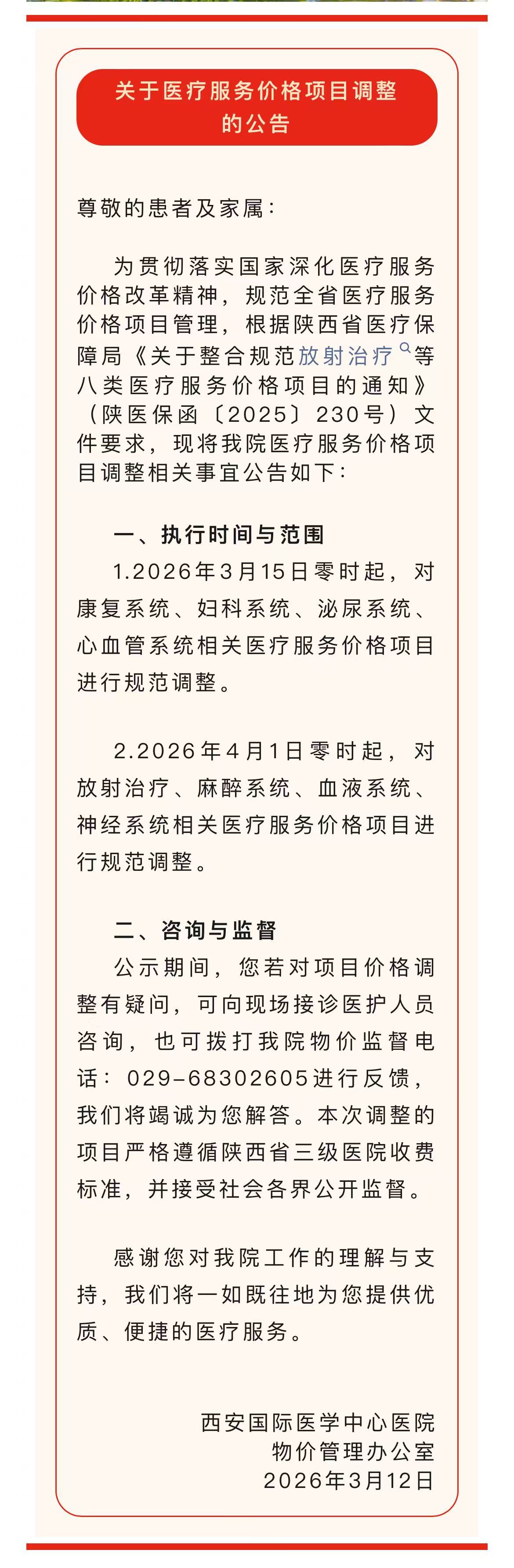 關(guān)于醫(yī)療服務(wù)價(jià)格項(xiàng)目調(diào)整的公告