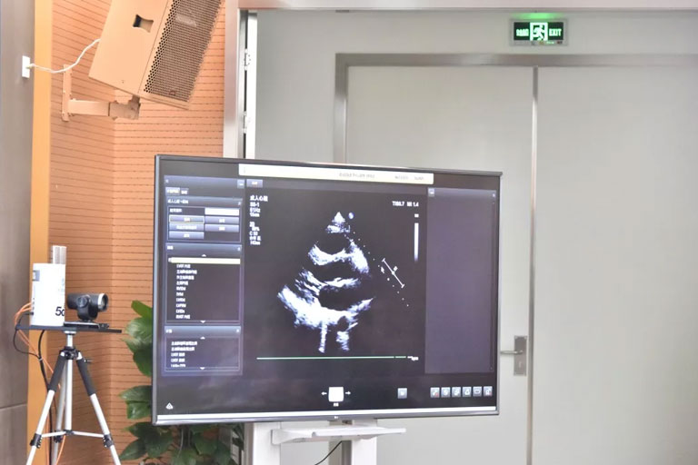 5G遠(yuǎn)程會(huì)診現(xiàn)場(chǎng),西安國(guó)際醫(yī)學(xué)中心心內(nèi)科張衛(wèi)澤主任、超聲科陳姍姍主任打開(kāi)4K高清顯示器,屏幕上立刻出現(xiàn)了商洛國(guó)際醫(yī)學(xué)中心的B超畫(huà)面,一位醫(yī)生正在為患者做心臟B超,隨著探頭的轉(zhuǎn)動(dòng),超聲機(jī)器上的畫(huà)面清晰可見(jiàn),雖然兩家醫(yī)院相距一百多公里,但畫(huà)面流暢,沒(méi)一點(diǎn)拖沓。